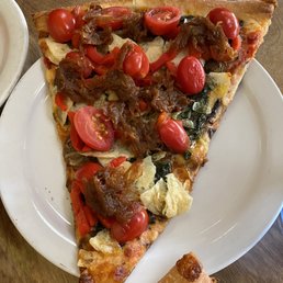 Stopped by after passing by this place for months. My friend and I ordered a slice on a nice sunny day and they brought it out for us to eat at the outside patio. The big wave Dave was delicious! An elevated Hawaiian pizza with bacon, cilantro, crushed pineapples, and jalapeños. 5/5 I'm gonna need a full pie of this soon! The Dimitri: my friend really enjoyed this one, pepperoni, sausage, and freshly sliced mushrooms. What's there not to like 5/5 Service was quick and simple, just order right at the front if you are not dining in.